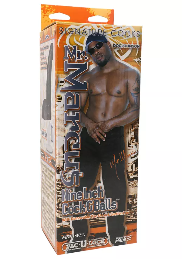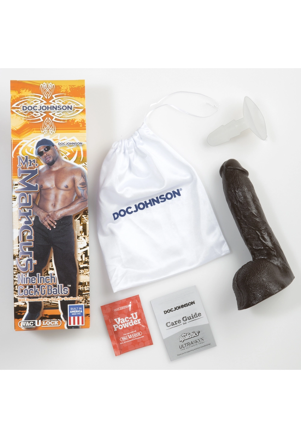 The Mr. Marcus Nine Inch Cock and Balls is compatible with Vac-U-Lock™ harnesses and accessories and a removable suction cup base for a smooth ride. Vac-U-Lock™ is the world’s first and only patented interchangeable harness system, offering endless possibilities for you to embrace your fantasies.